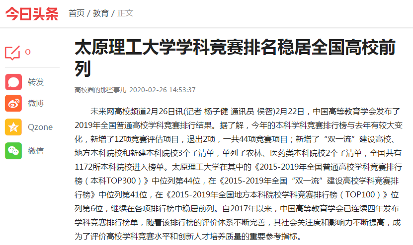 未来网高校频道2月26日讯(记者 杨子健 通讯员 侯智)2月22日,中国高等教育学会发布了2019年全国普通高校学科竞赛排行结果。据了解,今年的本科学科竞赛排行榜与去年有较大变化,新增了12项竞赛评估项目,退出2项,一共44项竞赛项目;新增了“双一流”建设高校、地方本科院校和新建本科院校3个子清单,单列了农林、医药类本科院校2个子清单,全国共有1172所本科院校进入榜单。国产亚洲精品美女久久久_99久无码中文字幕一本久道_亚洲成AV人影院_亚洲AV影院一区二区三区 狠狠躁夜夜躁人人爽天天不卡_国产激情久久久久影院老熟女_精品性高朝久久久久久久在其中的《2015-2019年全国普通高校学科竞赛排行榜(本科TOP300)》中位列第44位,在《2015-2019年全国“双一流”建设高校学科竞赛排行榜》中位列第41位,在《2015-2019年全国地方本科院校学科竞赛排行榜(TOP100)》位列第6位,继续在各项排行榜中稳居前列。自2017年以来,中国高等教育学会已连续四年发布学科竞赛排行榜单,随着该排行榜的评价体系不断完善,其社会关注度和影响力不断提高,成为了评价高校学科竞赛水平和创新人才培养质量的重要参考指标。