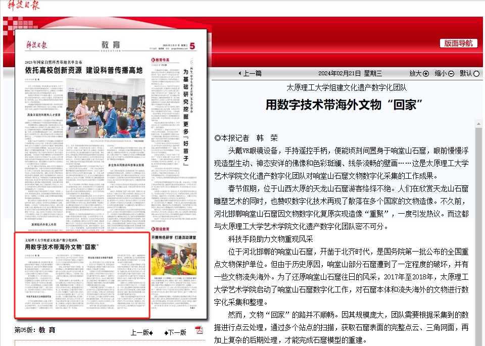 “不论是天龙山石窟还是响堂山石窟的数字复原都经历了数年时间,都是由教师带领学生不断接力才有了如今的成果。”赵慧介绍,多年来该团队致力于山西省内外重要文化遗产的数字化保护,目前已完成国内外文化遗产数字化采集和复原项目10余个,采集文化遗产数字资源40余项,培养学生100余人。