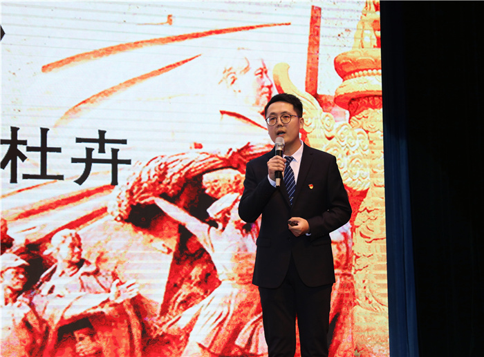 电影开映前,学校“百组千讲5·20教育计划”之电影展播宣讲团首席主讲人、机械与运载工程学院辅导员杜卉为大家讲述了《建军大业》的历史背景及影片简要介绍。