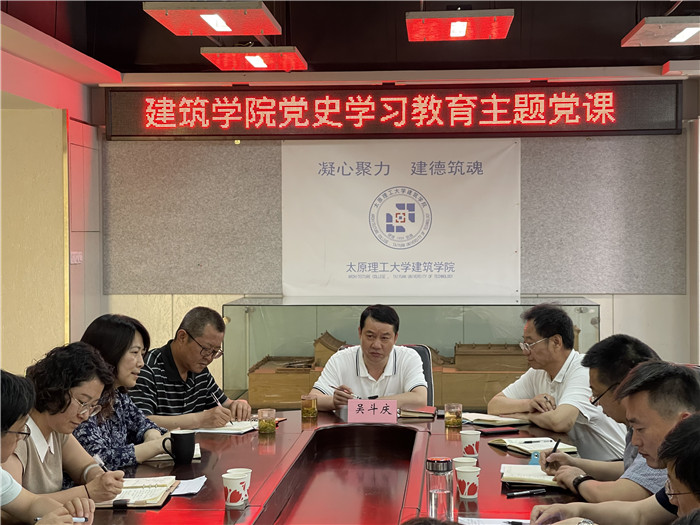 座谈会后,吴斗庆结合个人党史学习教育体会,为建筑学院党员干部讲授专题党课。他通过开国大典、抗美援朝、一化三改、毛主席发表《论十大关系》、八大召开、反右大跃进、二弹一星、加入联合国等重要历史节点带领大家回顾社会主义革命和建设时期的历史。他强调,当前我国正面临百年未有之大变局,学校与时俱进提出了新的发展建设目标,我们要结合党史学习教育,进一步做到“学党史 悟思想 办实事 开新局”,要通过贯穿全年的党史学习教育,让广大党员、干部坚定理想信念,牢固树立“四个意识”、坚定“四个自信”、自觉做到“两个维护”,引导全院师生深刻理解中国共产党领导是历史的选择、人民的选择的时代内涵。
