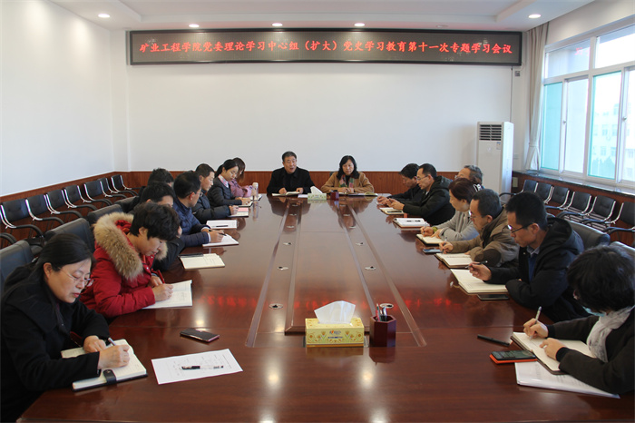 11月30日上午,矿业工程学院在虎峪校区致明楼318会议室召开党委理论学习中心组(扩大)党史学习教育第十一次专题学习交流会,院党政班子成员、三办一委负责人、党支部书记、全体机关干部参加会议,专题学习交流会由院党委书记薛武杰主持。