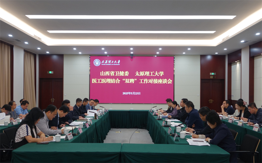 5月23日上午,医工医理结合“双聘”工作对接座谈会在我校迎西校区会议中心一层会议室召开,山西省卫健委党组成员、副主任张少然,山西省人民医院党委书记张瑞平,山西医科大学第一医院副院长韩清华,我校党委书记沈兴全,副校长桑胜波出席座谈会。山西省卫健委、山西省人民医院、山西医科大学第一医院相关负责人,我校相关部门(单位)负责人参加座谈。座谈会由桑胜波主持。