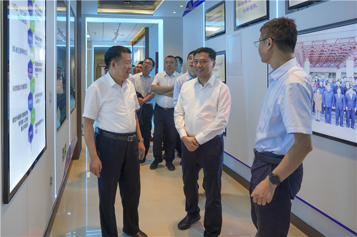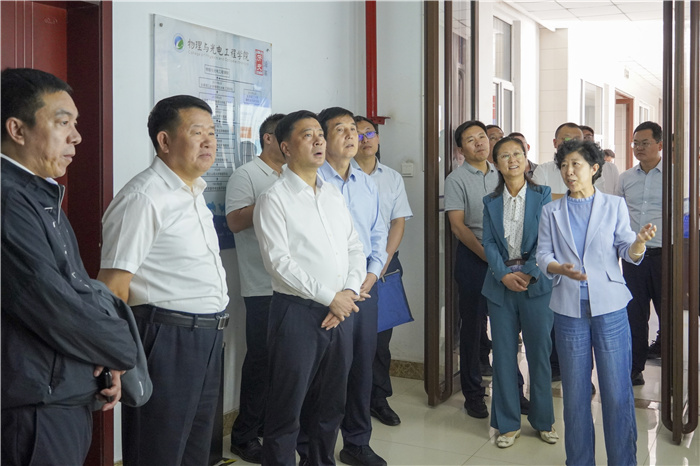 在沈兴全的陪同下,陈雷一行先后参观了我校新型传感器与智能控制教育部重点实验室、物理与光电工程学院有机光电子材料与器件实验室、微纳传感与人工智能感知山西省重点实验室,听取科研人员对相关研究领域、项目进展、科研成果等方面的情况介绍,了解我校在航天科工、电子信息领域具有重大影响力和创新性的成果。