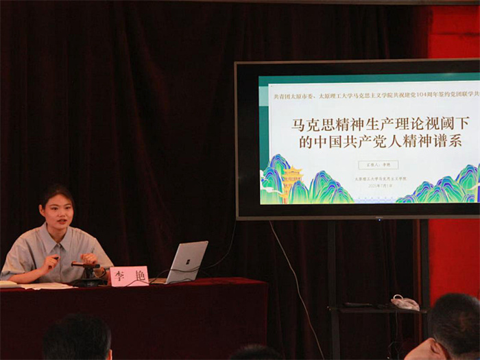 签约仪式结束后,马克思主义学院概论教研室主任李艳副教授为共青团太原市委全体团干作了题为《马克思精神生产理论视阈下的中国共产党人精神谱系》的学术讲座,深入浅出地阐释了马克思精神生产理论的内涵与实质,并结合中国共产党百年奋斗历程,生动展现了中国共产党人精神谱系的丰富内容与时代价值。