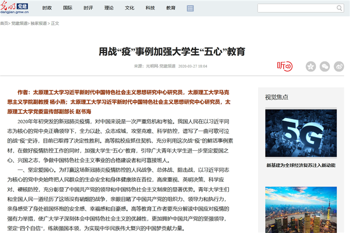 习近平总书记给北京大学援鄂医疗队全体“90后”党员的回信激励我省广大青年——不惧风雨 勇挑重担 继续奋战