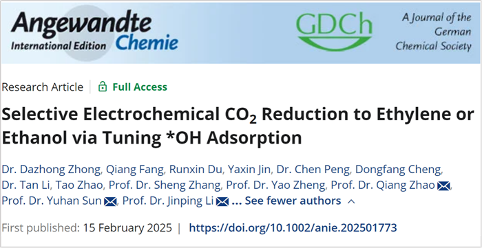 化学与化工学院李晋平教授团队在电催化CO2还原方向取得新进展